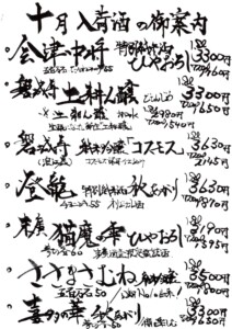 グッと秋の深みを愉しんでいきたいところです。入荷酒のラインナップも深いところが多いです。